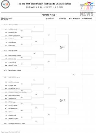 2nd WTF World Cadet Taekwondo Championships. Сетки. Девушки до 47 кг. (Size: 63.09 Kb. Downloads: 37)