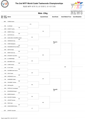 2nd WTF World Cadet Taekwondo Championships. Сетки. Юноши до 33 кг. (Size: 63.86 Kb. Downloads: 36)