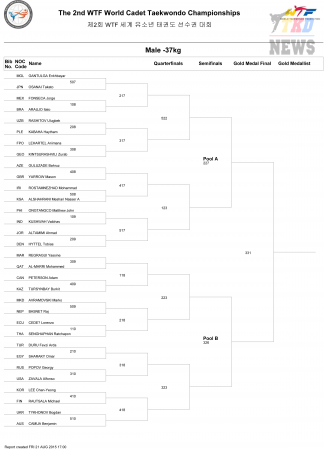 2nd WTF World Cadet Taekwondo Championships. Сетки. Юноши до 37 кг. (Size: 65.26 Kb. Downloads: 40)