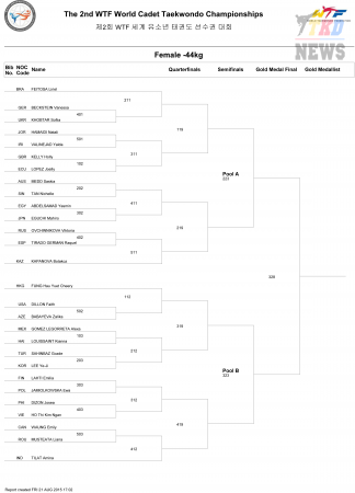 2nd WTF World Cadet Taekwondo Championships. Сетки. Девушки до 44 кг. (Size: 63.61 Kb. Downloads: 30)
