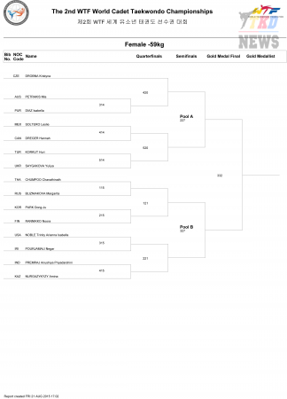 2nd WTF World Cadet Taekwondo Championships. Сетки. Девушки до 59 кг. (Size: 60.18 Kb. Downloads: 32)