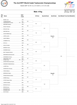 2nd WTF World Cadet Taekwondo Championships. Сетки. Юноши до 41 кг. (Size: 65.91 Kb. Downloads: 38)