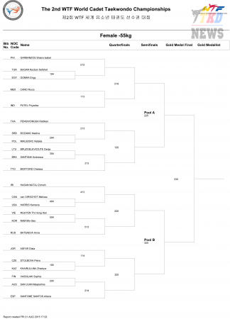 2nd WTF World Cadet Taekwondo Championships. Сетки. Девушки до 55 кг. (Size: 62.33 Kb. Downloads: 26)