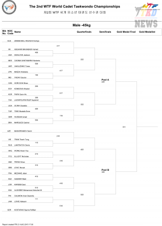 2nd WTF World Cadet Taekwondo Championships. Сетки. Юноши до 45 кг. (Size: 64.48 Kb. Downloads: 43)