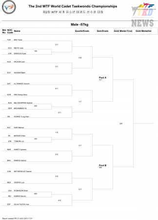 2nd WTF World Cadet Taekwondo Championships. Сетки. Юноши до 57 кг. (Size: 62.25 Kb. Downloads: 21)