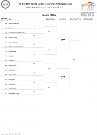 2nd WTF World Cadet Taekwondo Championships. Сетки. Девушки свыше 59 кг. (Size: 62.42 Kb. Downloads: 26)