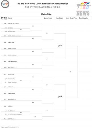 2nd WTF World Cadet Taekwondo Championships. Сетки. Юноши до 61 кг. (Size: 63.56 Kb. Downloads: 31)