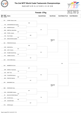 2nd WTF World Cadet Taekwondo Championships. Сетки. Девушки до 37 кг. (Size: 63.07 Kb. Downloads: 32)