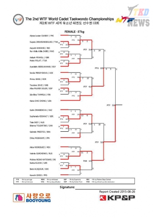 2nd WTF World Cadet Taekwondo Championships. Результаты. Девушки до 37 кг. (Size: 296.69 Kb. Downloads: 55)