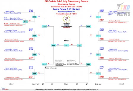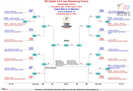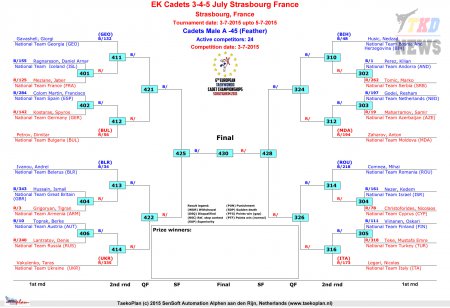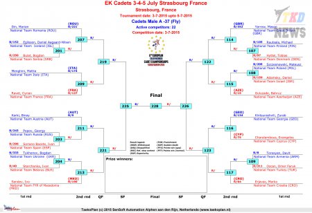 Первенство Европы по тхэквондо ВТФ среди кадетов. День первый. Сетки.