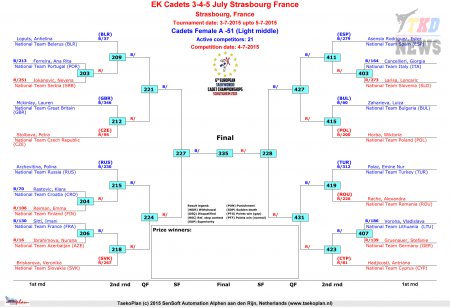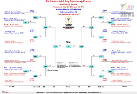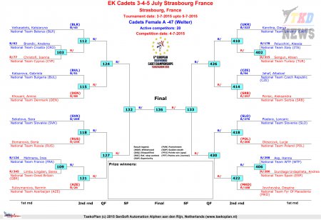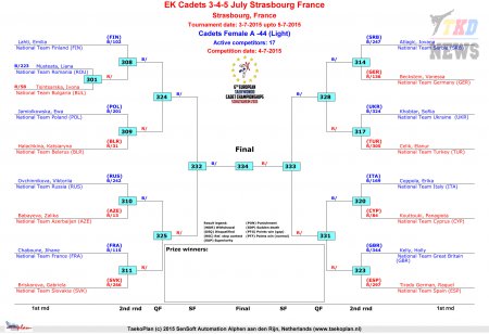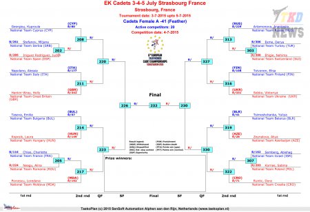 Первенство Европы по тхэквондо ВТФ среди кадетов. День второй. Сетки.