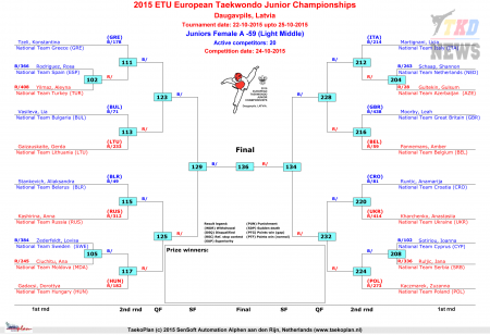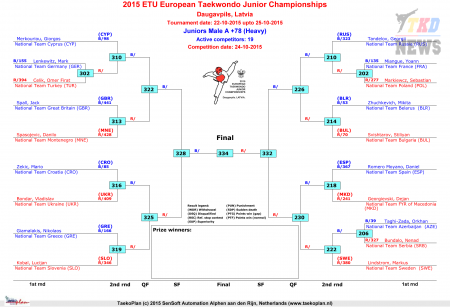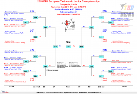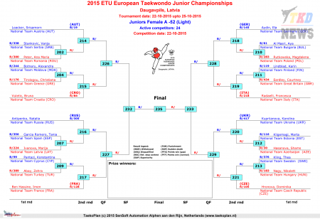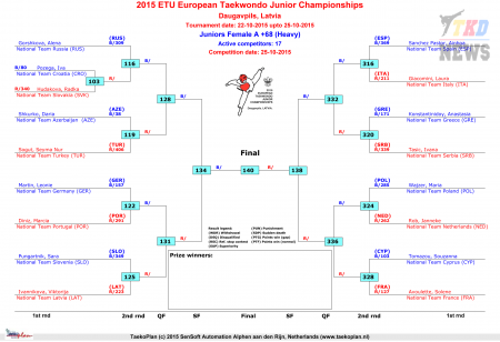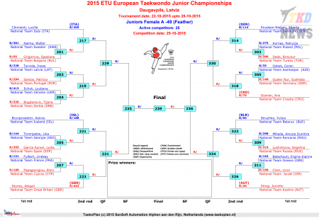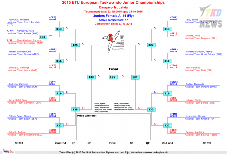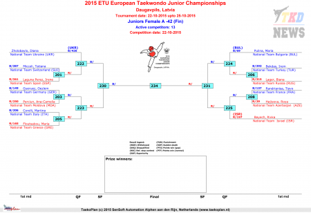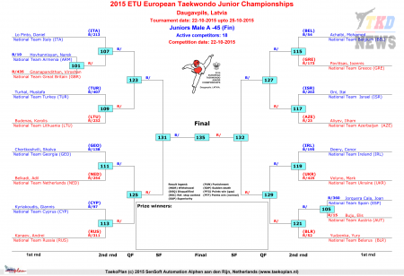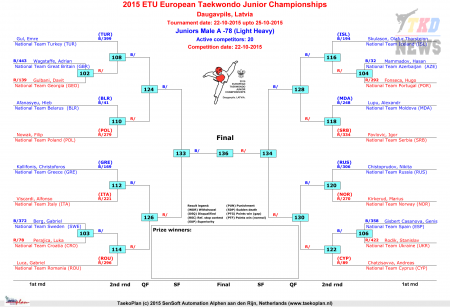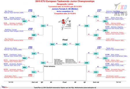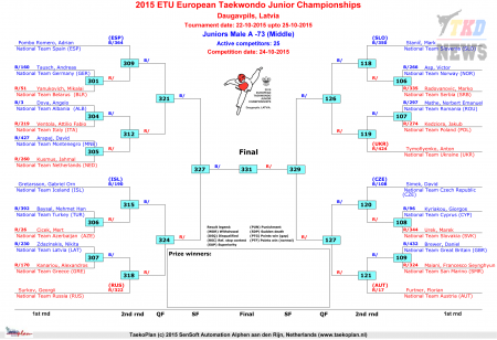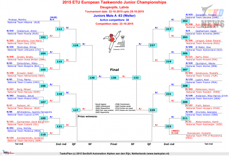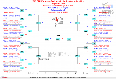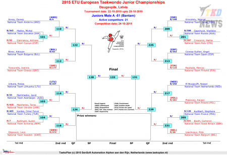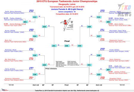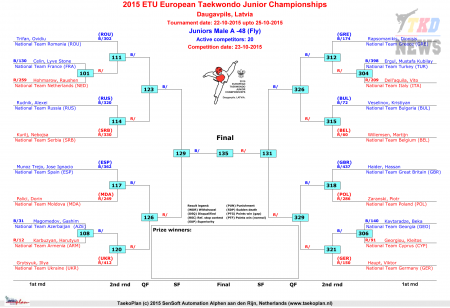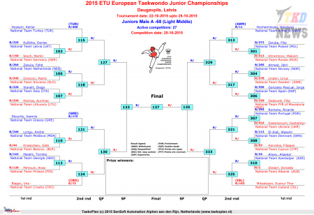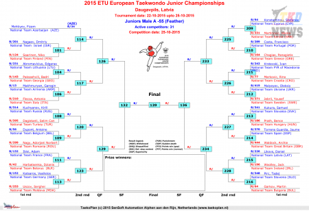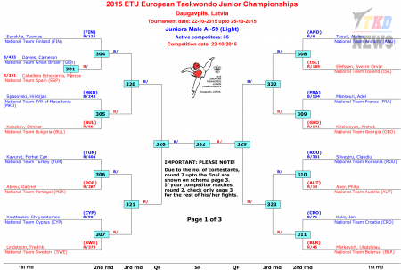 Первенство Европы по тхэквондо WTF среди юниоров. Сетки по весовым категориям.