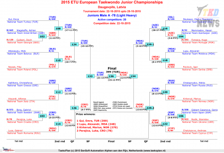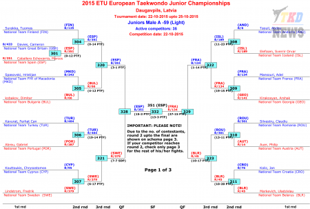 Первенство Европы по тхэквондо WTF среди юниоров. День первый. Результаты.