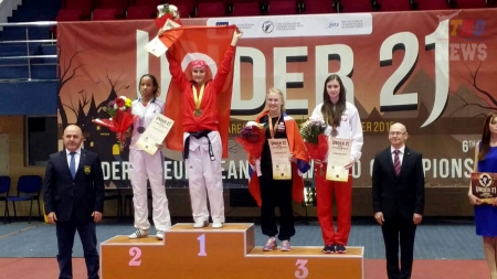 В то время как в Сочи завершился Чемпионат России, Первенство Европы по тхэквондо WTF среди молодёжи, стартовавшее вчера в Бухаресте, достигло середины. Во второй день Сборная России укрепила своё лидерство в командном зачёте, завоев две золотые и одну серебряную медали. Победителями второго дня стали бельгиец Si Mohamed Ketbi (мужчины до 63 кг), российские спортсмены Максим Храмцов (мужчины до 68 кг) и Татьяна Кудашова (женщины до 53 кг) и спортсменка из Турции Durdane Altunel (женщины до 57 кг). Всего один бал в финальном поединке уступил Борис Краснов серебряному призёру Чемпионата Мира этого года бельгийцу Si Mohamed Ketbi.