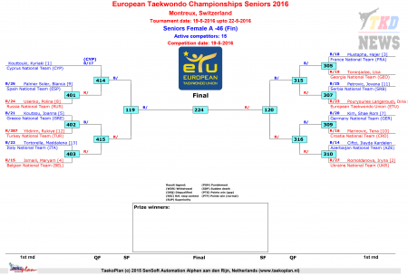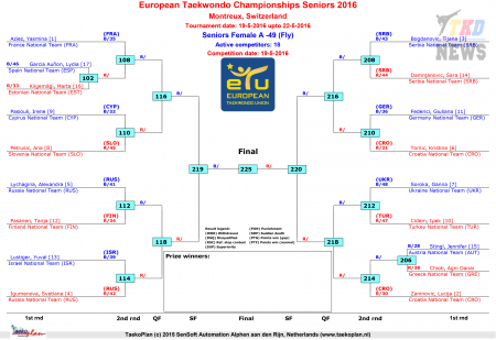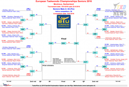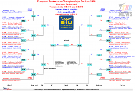 Чемпионат Европы по тхэквондо ВТФ Монтрё-2016. День первый. Сетки.