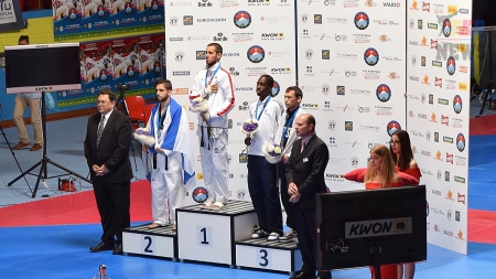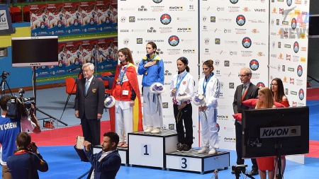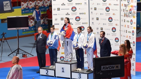 На стартовавшем вчера, в швейцарском городе Монтрё, Чемпионате Европы по тхэквондо ВТФ чемпионами Европы стали: украинка Iryna Romoldanova (женщины до 46 кг), сербская спортсменка Tijana Bogdanovic (женщины до 49 кг), бельгиец Mourad Laachraoui (мужчины до 54 кг) и спортсмен из Португалии Rui Braganca (мужчины до 58 кг). Сборная России завоевала в первый день четыре бронзовых медали. С результатами первого дня можно ознакомиться в прилагаемых файлах.
