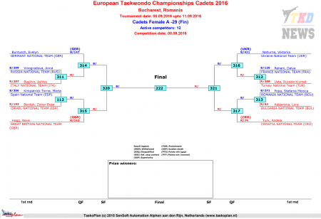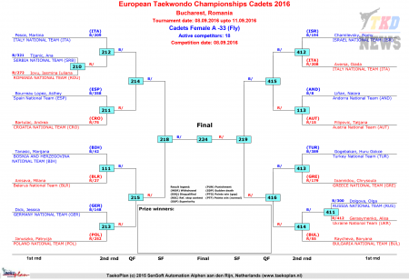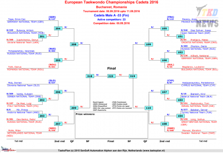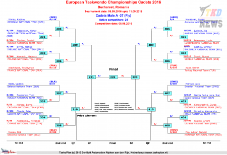Первенство Европы по тхэквондо ВТФ среди кадетов, Бухарест-2016. День первый. Сетки.