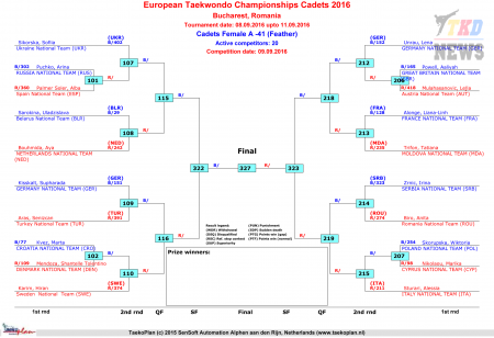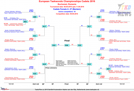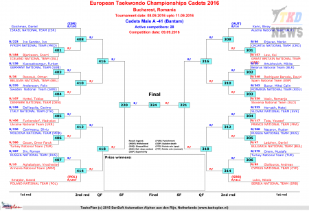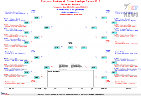Первенство Европы по тхэквондо ВТФ среди кадетов, Бухарест-2016. День второй. Сетки.