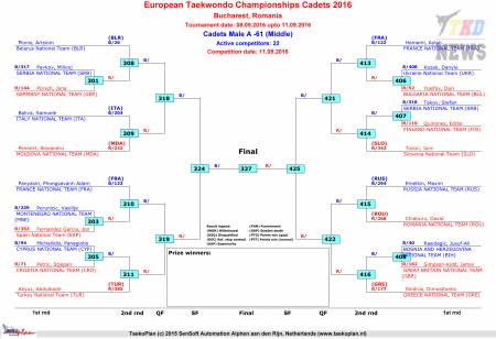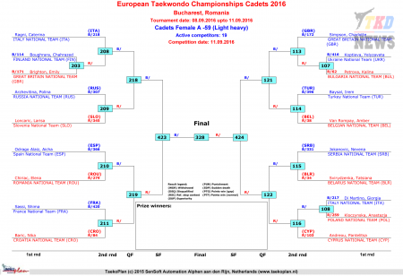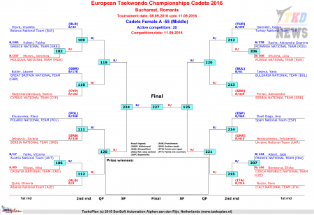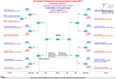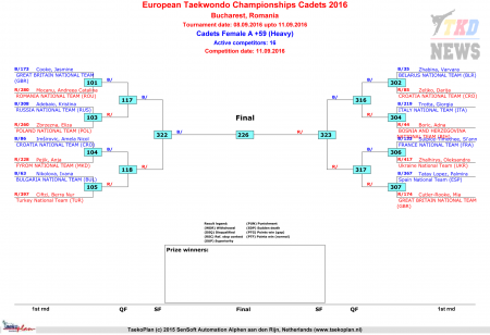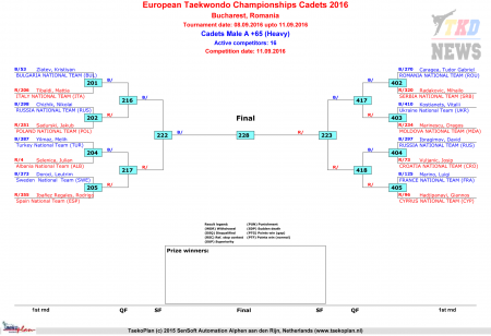 Первенство Европы по тхэквондо ВТФ среди кадетов, Бухарест-2016. День четвёртый. Сетки.