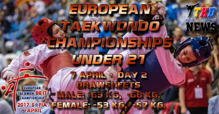 7 апреля, во второй день соревнований Первенства Европы по тхэквондо WTF среди молодёжи, проходящего в столице Болгарии, будут разыграны награды в весовых категориях у женщин до 53 кг и до 57 кг, у мужчин до 63 кг и до 68 кг. Сетки второго дня соревнований в прилагаемых файлах.