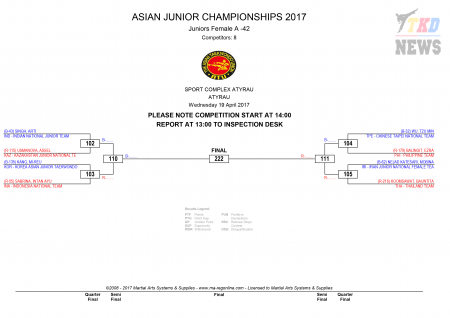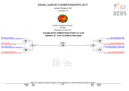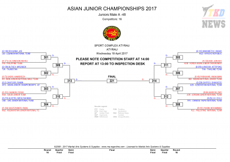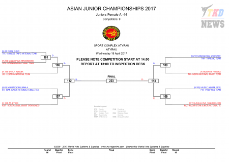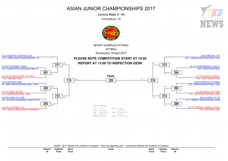 9th Asian Junior Taekwondo Championships & 4th Asian Junior Poomsae Championships. День первый. Сетки.