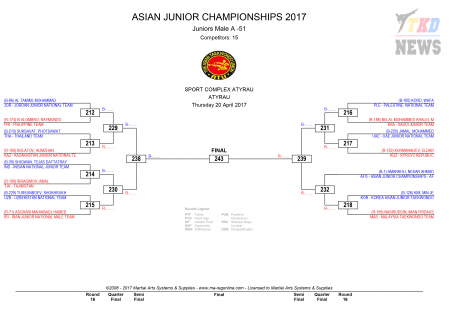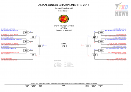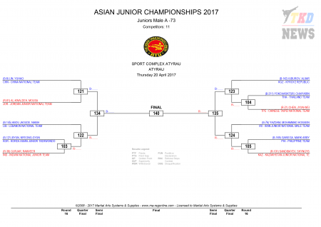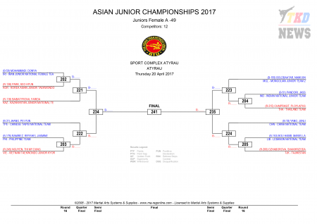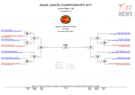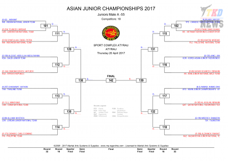 9th Asian Junior Taekwondo Championships & 4th Asian Junior Poomsae Championships. День второй. Сетки.