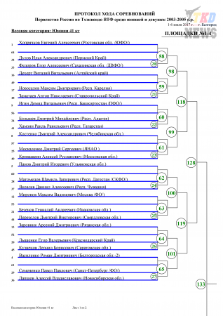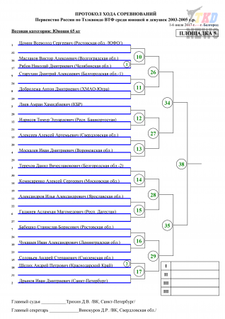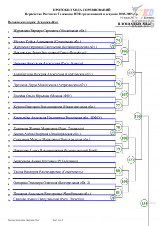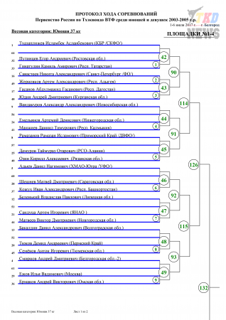 Первенство России по тхэквондо ВТФ среди кадетов, Белгород-2017. Корт №1