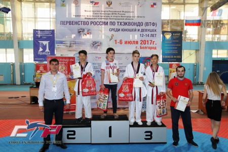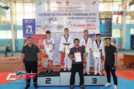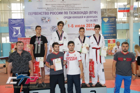 В Белгороде завершилось Первенство России по тхэквондо ВТФ среди кадетов, которое длилось четыре дня. В заключительный день было разыграно пять комплектов наград, золото в своих весовых категориях завоевали Смирнова Оксана (девушки до 44 кг), Яхненко Даниил (юноши до 37 кг), Магомедов Шамиль (юноши до 41 кг), Лиев Амран (юноши до 65 кг) и Боровиков Георгий (юноши свыше 65 кг). Протоколы соревнований будут опубликованы в ближайшее время.
