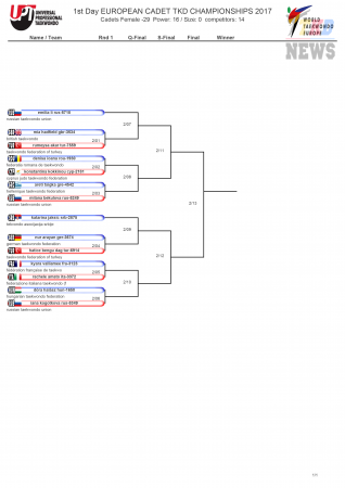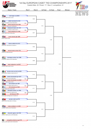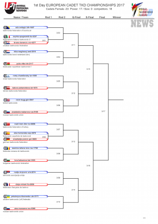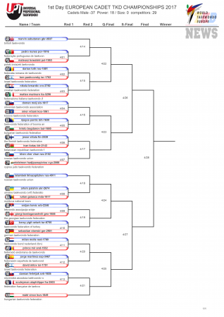 Первенство Европы по тхэквондо ВТФ среди кадетов, Будапешт-2017. День первый. Сетки.