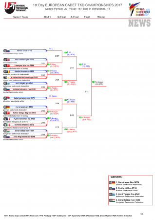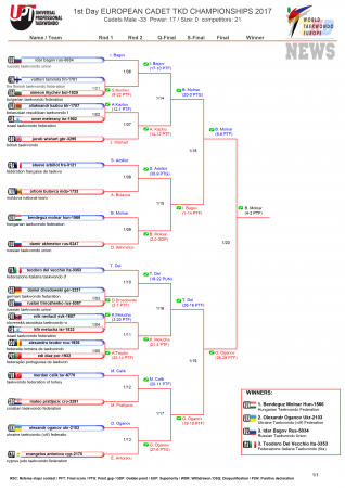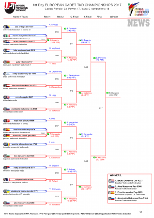 Первенство Европы по тхэквондо среди кадетов, Будапешт-2017. День первый. Результаты. (Size: 224.13 Kb. Downloads: 147)