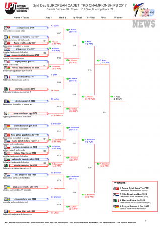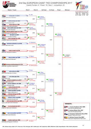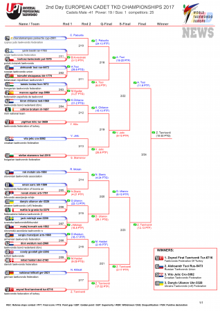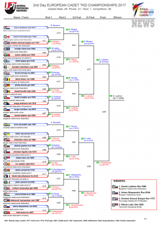 Первенство Европы по тхэквондо ВТФ среди кадетов, Будапешт-2017. День второй. Результаты.