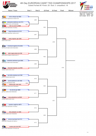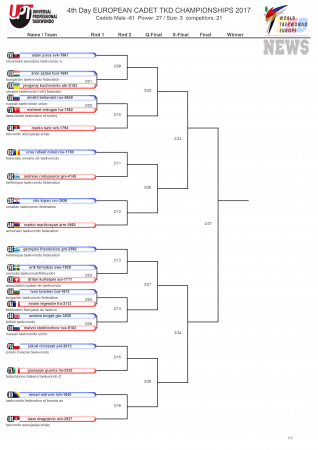 Первенство Европы по тхэквондо ВТФ среди кадетов, Будапешт-2017. День четвёртый. Сетки.