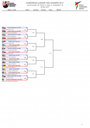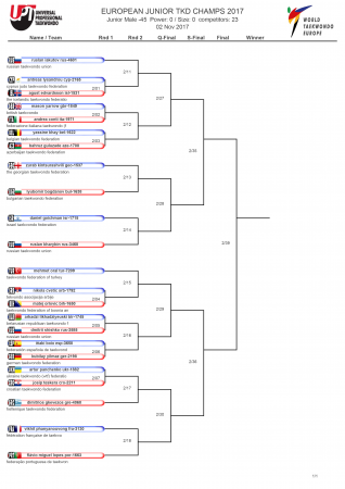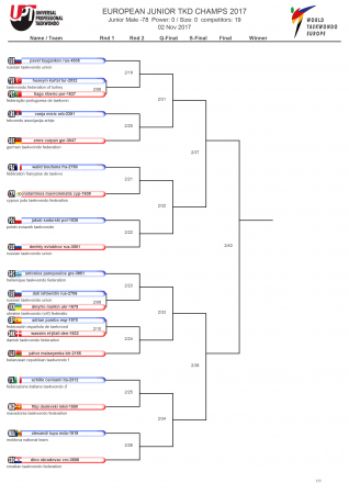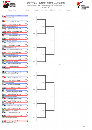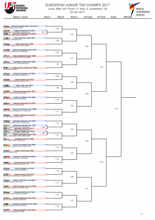 Первенство Европы по тхэквондо ВТФ среди юниоров, Ларнака-2017. День первый. Сетки.