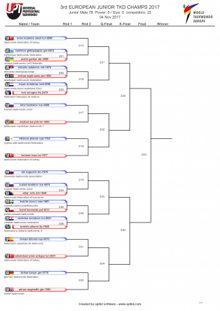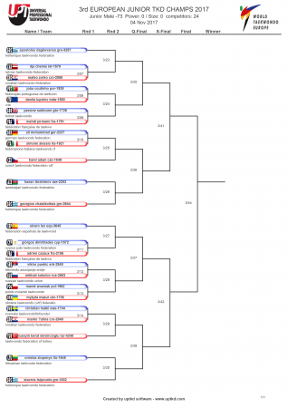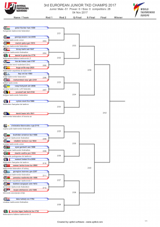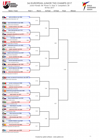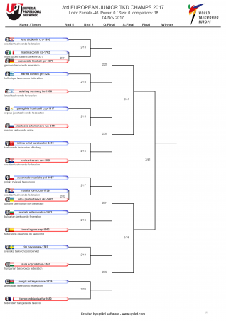 Первенство Европы по тхэквондо ВТФ среди юниоров, Ларнака-2017. День третий. Сетки.