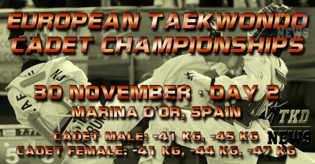 30 Ноября во второй день Первенства Европы по тхэквондо среди кадетов, проходящего в Испании, спор за медали поведут девушки в весовых категориях до 41 кг, до 44 кг, до 47 кг и юноши - до 41 кг, до 45 кг. Следите за нашими новостями на сайте и в комментариях к новости в нашем паблике в ВКонтакте. Сетки второго дня в прилагаемом файле.