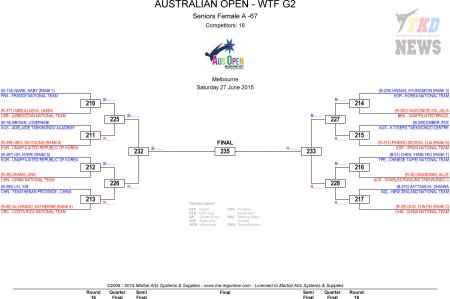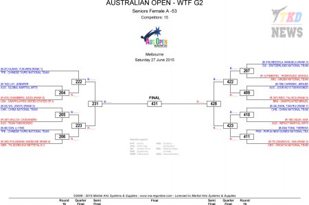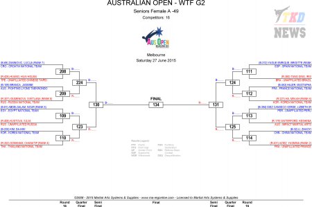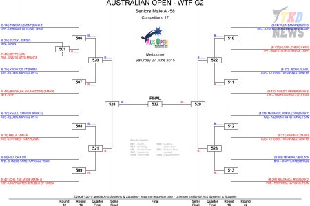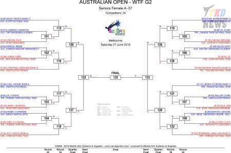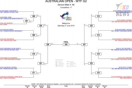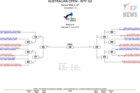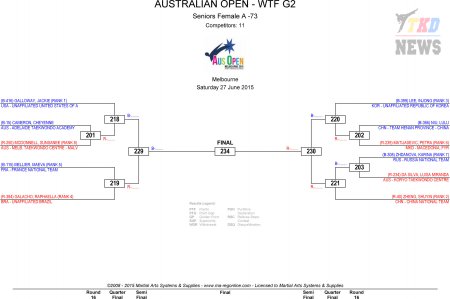 Australian Taekwondo Open 2015. День второй. Сетки.