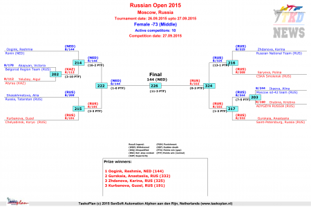 | 3 место | Volkova Julia | RUS | Krasnodar Region Taekwondo Team |