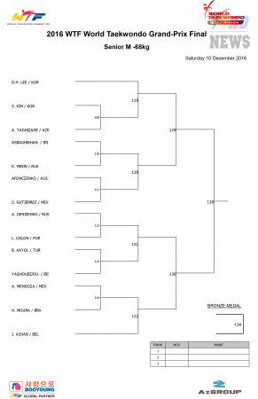 WTF World Taekwondo Grand Prix Final, Baku-2016. День второй. Сетки.