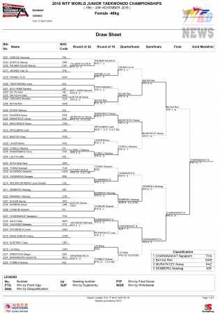 Первенство Мира по тхэквондо WTF среди юниоров. День второй. Результаты. Юниорки до 46 кг. (Size: 101.24 Kb. Downloads: 79)