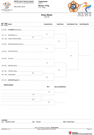 6th CISM World Games MUNGYEONG KOREA 2015. Тхэквондо. Сетки. Женщины до 57 кг. (Size: 244.79 Kb. Downloads: 46)