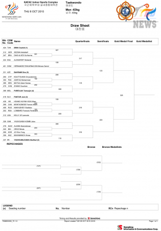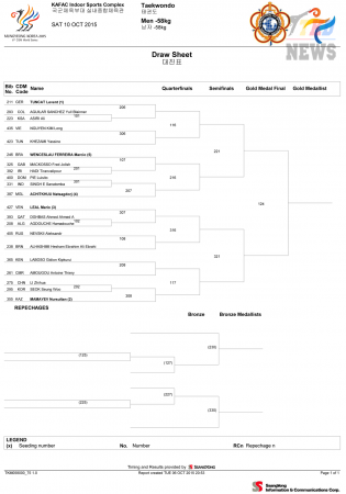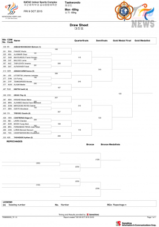 6th CISM World Games MUNGYEONG KOREA 2015. Тхэквондо. Сетки. Мужчины до 58 кг. (Size: 247.64 Kb. Downloads: 143)