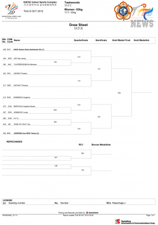 6th CISM World Games MUNGYEONG KOREA 2015. Тхэквондо. Сетки. Женщины до 46 кг. (Size: 243.49 Kb. Downloads: 81)
