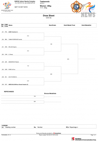 6th CISM World Games MUNGYEONG KOREA 2015. Тхэквондо. Сетки. Женщины до 49 кг. (Size: 242.68 Kb. Downloads: 86)
