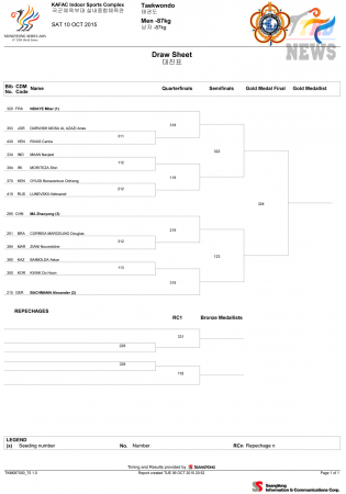 6th CISM World Games MUNGYEONG KOREA 2015. Тхэквондо. Сетки. Мужчины до 87 кг. (Size: 244.59 Kb. Downloads: 116)