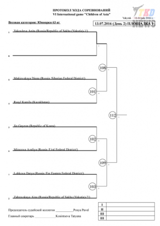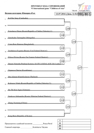 Дети Азии, Якутск-2016. Тхэквондо ВТФ. День второй. Сетки.