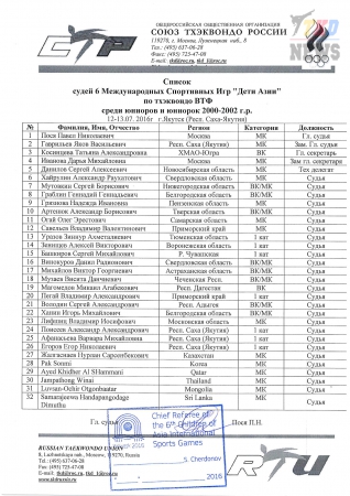 Дети Азии, Якутск-2016. Тхэквондо ВТФ. Итоговые протоколы. Published 14 July 2016 г. в 08:14 Moscow time 14-07-2016, 08:14 по Москве Комплексные соревнования / Kyorugi 4 318 0 Дети Азии В течении двух дней, 12 и 13 июля, на международных спортивных играх "Дети Азии", проходили соревнования по тхэквондо ВТФ. Ознакомиться с итоговыми протоколами можно в прилагаемых файлах.