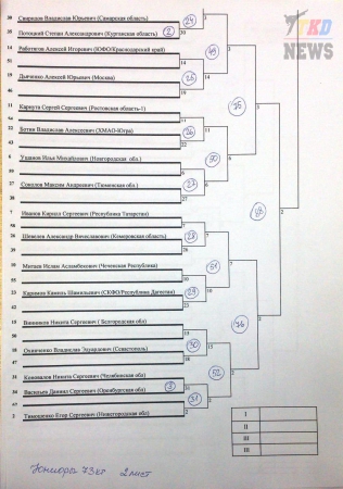 Первенство России по тхэквондо ВТФ среди юниоров. День второй. Сетки.
