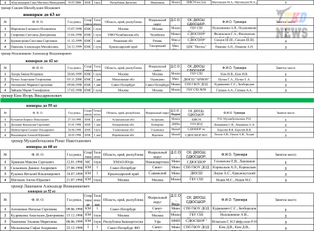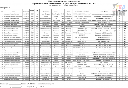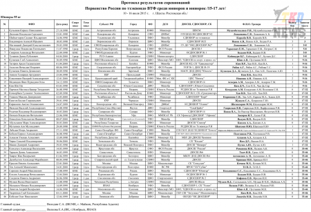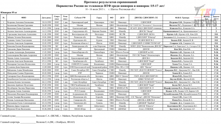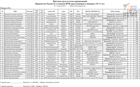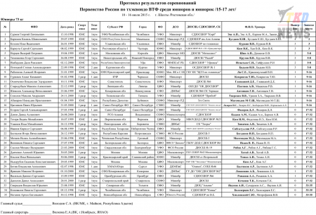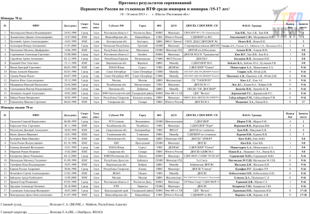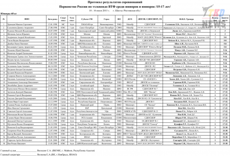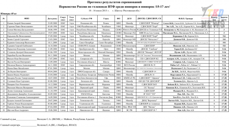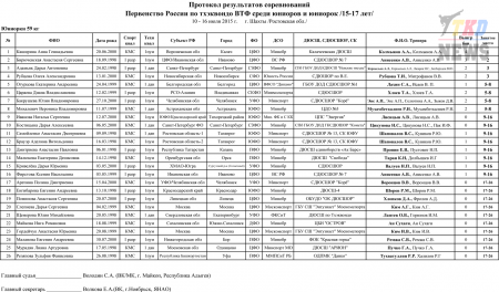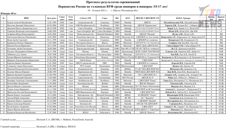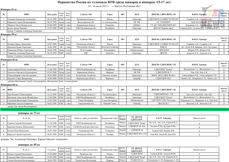 Первенство России по тхэквондо ВТФ среди юниоров 15-17 лет. Итоговый протокол. (Size: 3.12 Mb. Downloads: 40)