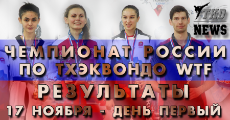 На проходящем в Сочи Чемпионате России по тхэквондо ВТФ были разыграны первые комплекты наград. Чемпионами России стали Челохсаева Анисия (женщины до 53 кг), Дрямова Милана (женщины до 57 кг), Животкова Арина (женщины до 73 кг) и Кузнецов Олег (мужчины свыше 87 кг).
