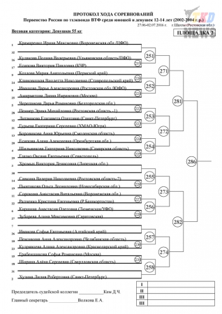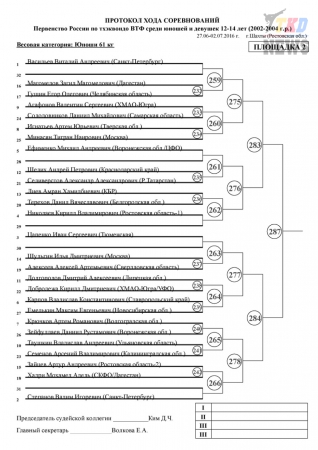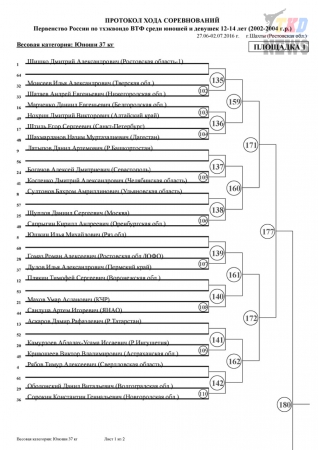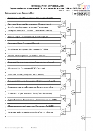 Первенство России по тхэквондо ВТФ среди кадетов, Шахты-2016. День первый. Сетки.